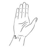取穴:仰掌,在腕关节掌侧尺侧腕屈肌腱桡侧凹陷处。