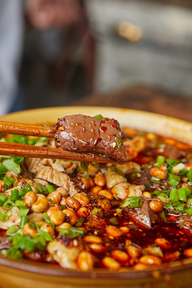 安仁“彭鸡肉”始于民国时期安仁镇吉祥街,彭鸡肉调料系祖传配方,熟油、辣椒、花椒、芝麻等都有一定的比例和制作火候,用筷子拈起,再放往钵中调料内打个滚,于是,白宰鸡肉就立刻裹上了一层红油调料。放在嘴里一嚼咀品尝,则嫩、喷香、又麻、又辣,十分可口。黄记绿豆花:豆花在四川民间极其常见,但绿豆花却不多见。普通豆花是用黄豆做的,绿豆花是用绿豆做的?当然不是,绿豆花是用绿色的干黄豆做成的,更美味、更健康。淋上家常豆瓣、花椒面、葱花儿和酥黄豆拌的蘸碟。此外,肥肠血旺几乎是来安仁的食客必点的招牌菜,舀一碗热腾腾的血旺,盖上一份新鲜卤制的肥肠,淋上各种调料,尤其是当地产的菜籽油和红辣椒秘制的红油,一份“肥肠血旺”就大功告成。位于老街上的“刘血旺”人气一直十分火爆,血旺鲜嫩香辣,入口化渣。经典搭配的菜肴还有卤肉、火爆肥肠和用米汤及时令蔬菜煮的“粑粑菜”。