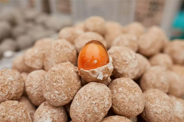 最独具特色的当属黄皮蛋了,得益于五凤溪优质的水生资源,五凤溪的蛋源都是来自沱江边农家放养的土鸭,这样的鸭蛋不仅个头大,而且蛋香浓郁、富含蛋白质。为了保证口感与质量,店家完全是按照传统的纯手工包泥,让每一颗蛋都能均匀裹上泥浆、沙子,这样腌制的皮蛋香气充分、吃起来也是更加鲜嫩。除了传统的皮蛋,当地商户还另辟蹊径,将鹌鹑蛋、鹅蛋等统统制作成风味皮蛋,花样之多,口味之丰富,实属古镇一大特色。走在老街上,看一看,闻一闻,尝一尝,眼里嘴里全是五凤溪水里的肥、土里的香,还有草木精华的甜脆。