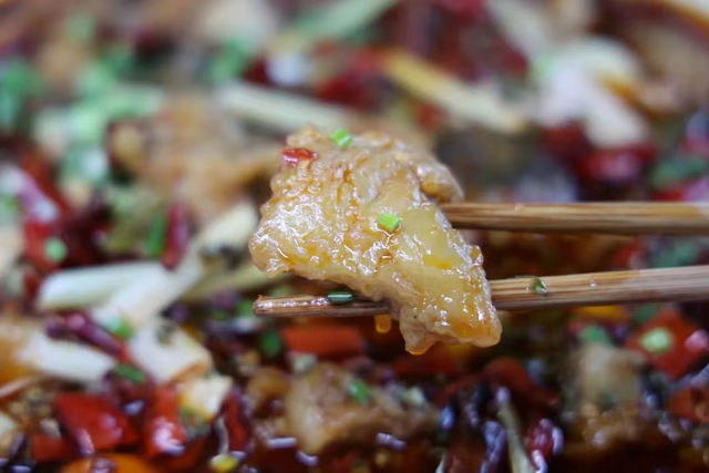 这是平乐古镇一道名菜。用的是白沫江里打捞的野生黄辣丁,吃起来香辣入味,细嫩爽口。
