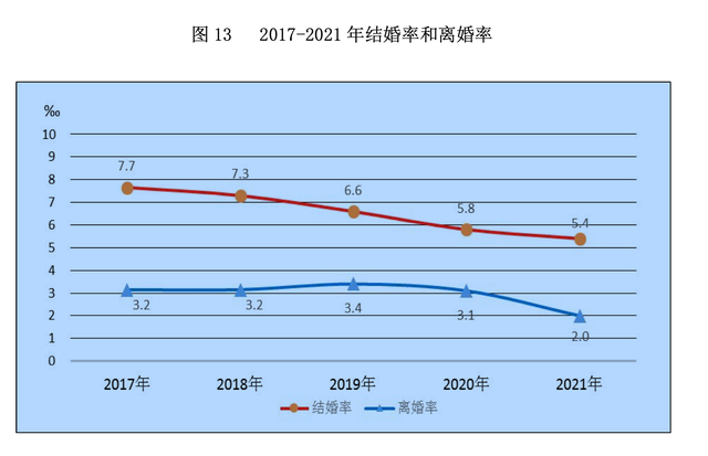 ↑ 2017年至2021年结婚率和离婚率 图据民政部
