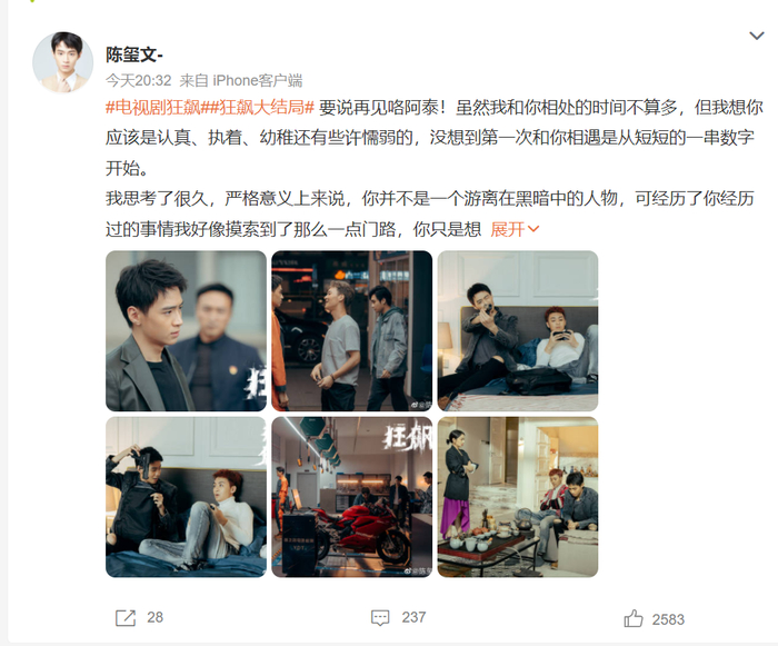 《狂飙》全员发文告别角色,张颂文:最喜欢旧鱼档的高启强!这个角色饰演者告别方式独特