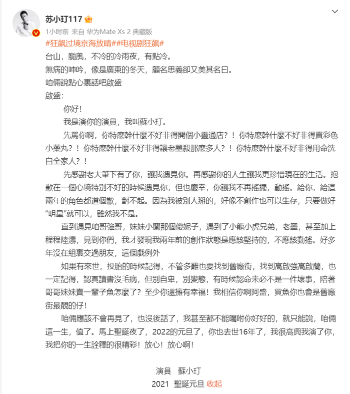 张颂文发长文:因为《狂飙》,我永远难忘这个春节,谢谢你们