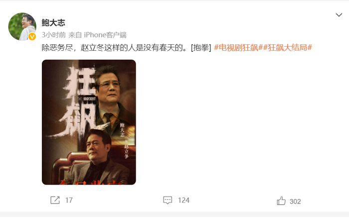 饰演赵立冬的演员鲍大志发文称:“除恶务尽,赵立冬这样的人是没有春天的。”......
