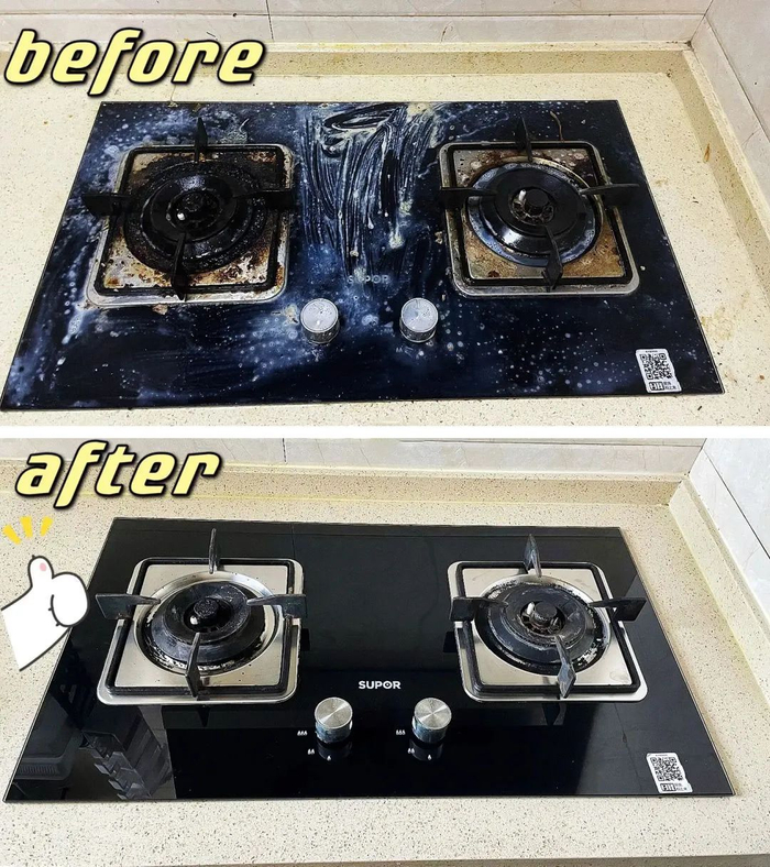 长年使用的燃气灶上黑乎乎的油污用它清洁,像是做了“瘦身”一样小一圈,巨干净!