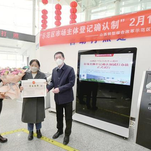 2月1日起,《山西转型综合改革示范区市场主体登记确认制试行办法》(以下简称《试行办法》)正式试行。当日,山西转型综合改革示范区(以下简称综改示范区)企业——山西互创共赢企业管理咨询有限公司在该区政务服务中心领取了山西省第一张使用市场主体登记确认制方式变更的营业执照。