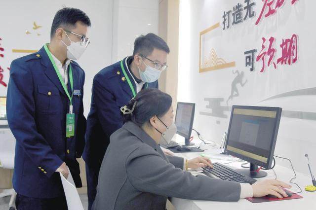 山西综改示范区政务服务中心工作人员指导企业进行网上办理、智能填报,方便快捷。