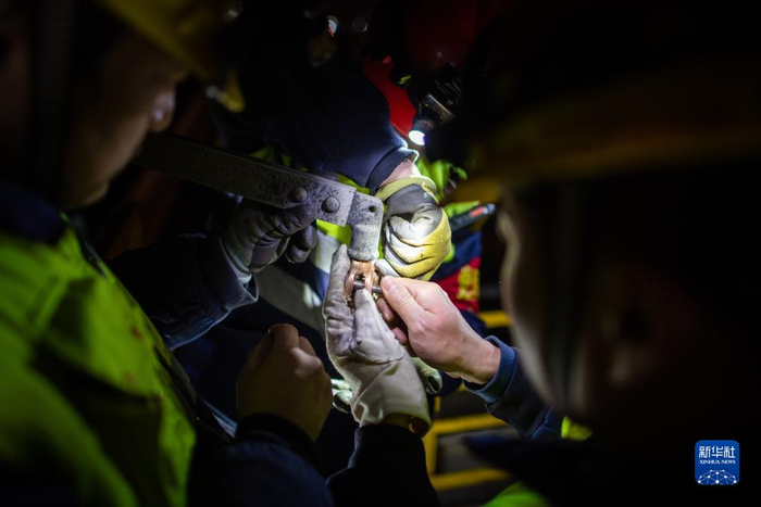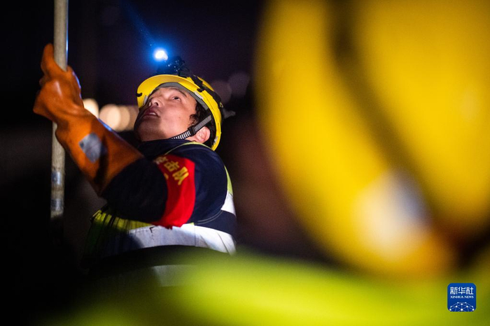 2月1日,接触网检修工人在接挂地线。铁路接触网供电设备是否正常运转,关系着每趟列车的安全运行。春运期间,中国铁路武汉局集团有限公司武汉供电段高铁接触网检修工人利用0点到6点的“天窗点”,头戴安全帽、身穿反光服,对京广高铁武汉段的接触网进行检修、维护,为高铁供电保驾护航。新华社记者 伍志尊 摄