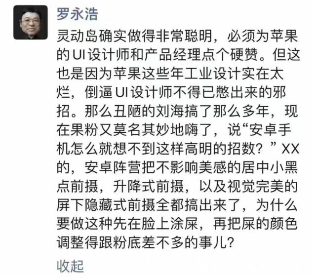 尽管 iPhone 14 Pro 的 A16 芯片相比 A15 在制程工艺上由 5nm 提升为 4nm,但是晶体管数量却仅从 150 亿个增加到 160 亿个,可以说是近几代 A 系列提升最小的一款芯片。拿 A16 与骁龙 8 Gen2 芯片对比,两者性能差别也不大。通过 Geekbench 测试,搭载骁龙 8 Gen2 芯片的小米 13 单核成绩为 1509 分,多核成绩为 5343 分,iPhone 14 Pro Max 的成绩分别为 1887 和 5455 分。就连苹果引以为豪的 iOS 系统也很难说有质的飞跃,引发热议的「灵动岛」功能在 2016 年的 LG V20 上就曾出现过。锤子手机的创始人罗永浩在社交媒体上奚落:这是「苹果 UI 设计师不得已憋出来的邪招」。