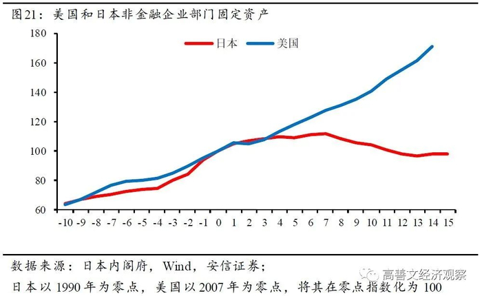 美日经历房地产泡沫后长期经济走向的差异说明企业行为可能在中长期来看是至关重要的。