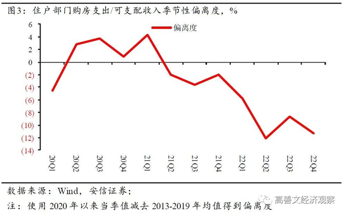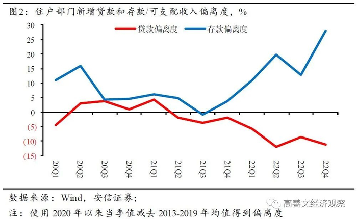 特别需要注意的是贷款少增和存款多增同时发生是相当异常的。贷款少增,意味着居民流入的现金大幅减少;存款多增,意味着居民流出现金增多。考虑到2022年以来居民储蓄率较以往季节性偏离幅度最高在3%左右,居民必然在资产配置方面进行了剧烈的调整,大量减少其他类别的资产配置,才能在贷款少增的情况下实现存款多增。