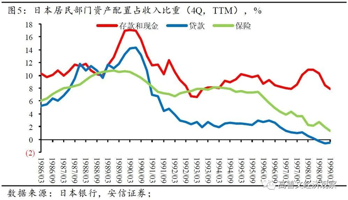 首先,日本居民的存款占收入比重下降和贷款占收入比重下降是同时发生的,资产和负债同时的减少才是缩表,这和中国居民的情况存在巨大差异。