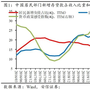 首先观察存款和贷款方面,我们使用居民部门在银行体系的存款和贷款的变化占可支配收入的比例来衡量这一变化。居民新增存款始终处于极高水平,同时,提前还贷和贷款需求偏弱共同造成贷款余额增长异常缓慢,