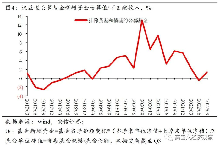 我们发现居民大幅削减了风险资产的配置比例,房地产和权益公募基金的数据如下图3和4所示。二季度后,住房和公募基金上,居民部门削减了占收入比重约20%的配置,考虑到居民在股票、实物资产和货币基金的配置也会调整,这一比例比较可靠。