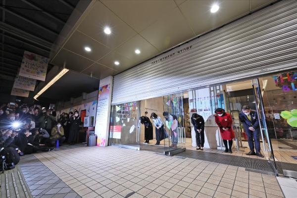 1月31日,日本东京,东急百货公司旗舰店的员工们在商店的卷帘门最后一次落下时鞠躬。东急百货公司曾是日本首都著名商业区的象征,曾运营了55年。