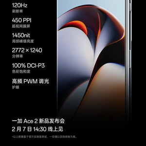 一加ACE2屏幕规格公布:1.5K曲面屏,触控响应大幅优化