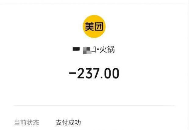 后来,我们换家火锅店,点了237元的餐品,我借上厕所的名义抢去买了单。
