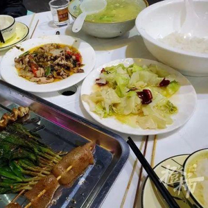 (1月28日)晚上,我和朋友两人逛到三月街口正门里几十米的一家饭店,随便点了几个菜品:腌菜炒肉、糊辣壳莲白、黄瓜鸡蛋汤,再点了6串烧烤。