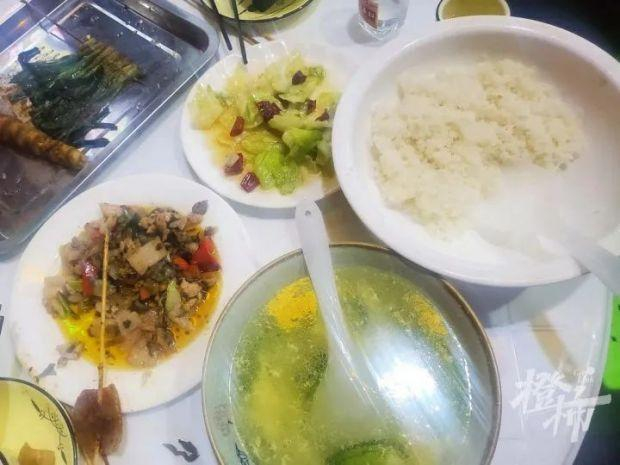 由于饭菜实在难吃,而我们除了吃了5串烧烤、夹了几筷子餐品,几乎没用动过食材。