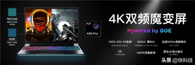 而且搭载HSR像素变化的行业顶级双频显示屏,可以实现原生4K 120Hz高分辨率模式与FHD 240Hz高刷模式的切换。