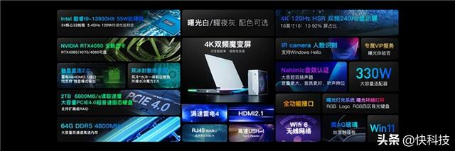 其他配置也同样亮眼,曙光16Pro搭载IR Camera,支持人脸识别。64G DDR5的大容量高速内存,2TB大容量高速固态硬盘,支持双PCIE4.0扩展。