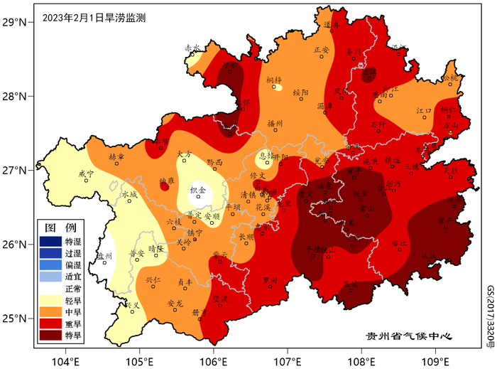 王玥彤:从去年7月以来,全省平均降水量较常年同期偏少47.7%。也有间歇性降水,并不是一滴雨都没有下。但从统计来看,去年7月至今,贵州全省仅发生了1次区域性强降水,的确明显偏少。与常年同期相比,除西部局地正常外,全省普遍偏少。