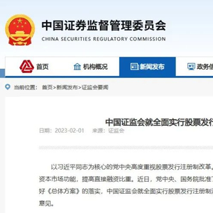 2023年2月1日,《中国证监会就全面实行股票发行注册制主要制度规则向社会公开征求意见》(以下简称《意见》)发布。同日,全面实行股票发行注册制改革正式启动。