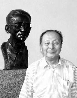 陈志华先生在梁思成塑像前留影 李秋香摄于2002年