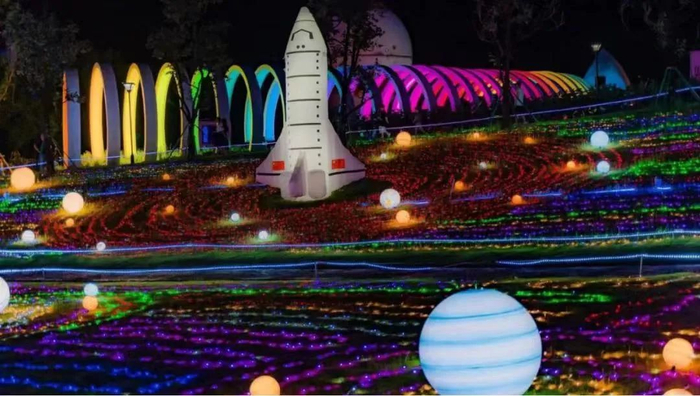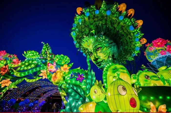●活动内容:大型“彩灯游”活动。景区花灯布展面积300亩,由10座大型灯组、1600米灯廊、2万余串树挂彩灯构成五彩缤纷的绚丽景象,一场炫彩夺目、精彩纷呈的花灯视觉盛宴正蓄势来袭。