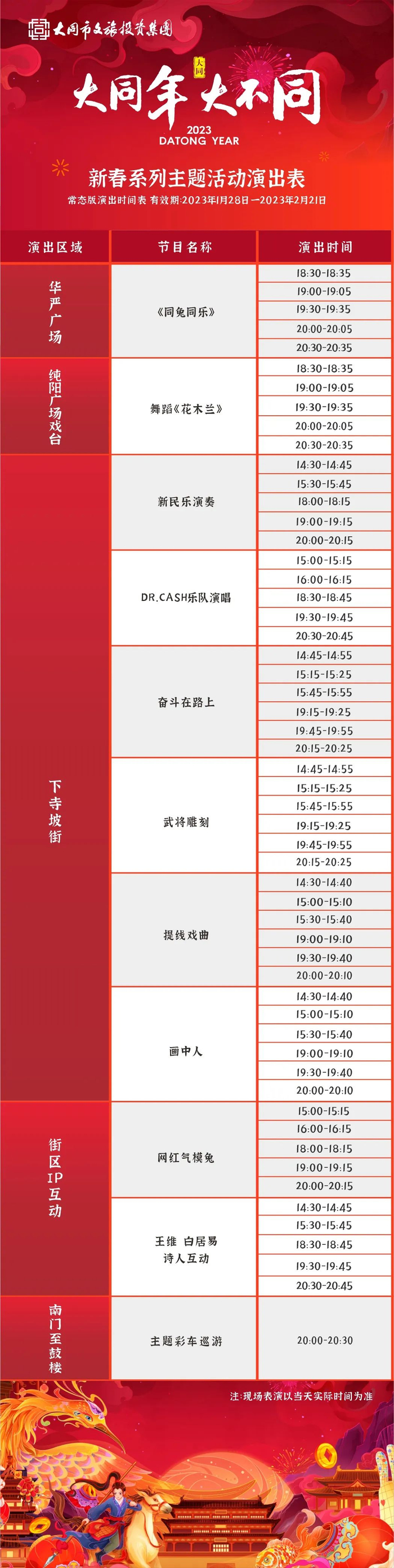 ●活动内容:“司徒不夜城”游兔年灯会,赏山西不夜城;赏花火大秀,观沉浸演艺;赏经典剧目,玩年俗游戏;逛司徒小镇,享团圆假期。