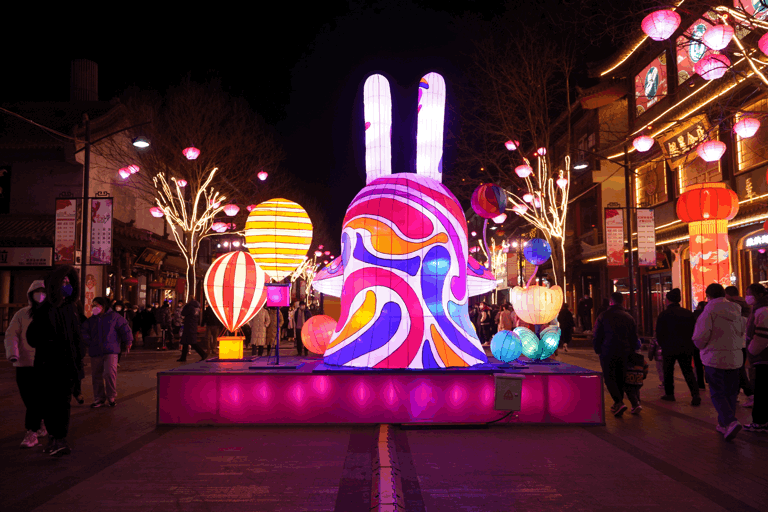 ●活动内容:“郭峪不夜城”:炫彩光影秀、变脸、国风巡游、民俗、快闪、魔术、杂技、萌兔迎春送福,全天候20项精彩演艺轮番上演。