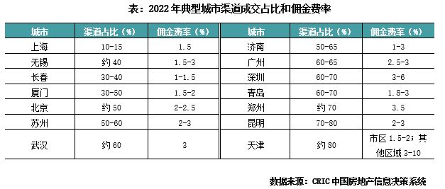 据克尔瑞研究中心统计,2022年,多数城市平均分销渠道成交占比依然在50%以上。其中,天津市场由市区向外对渠道越来越依赖,整体平均渠道成交占比能达到80%左右,郑州、昆明、武汉、青岛、福州等多个城市分销渠道成交占比也都超过60%。