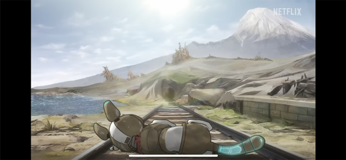 作为一部时长不足4分钟的动画,《犬与少年》的故事与画面都较为简单。其中也不乏一些巧思,比如在主人烤鱼时,小狗会帮忙喷火;主人入伍后,小狗会摇着电量不足的尾巴,在铁轨上等待主人的身影。