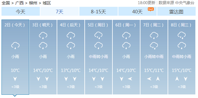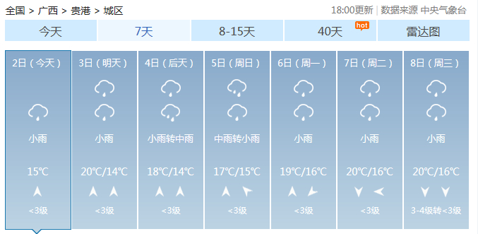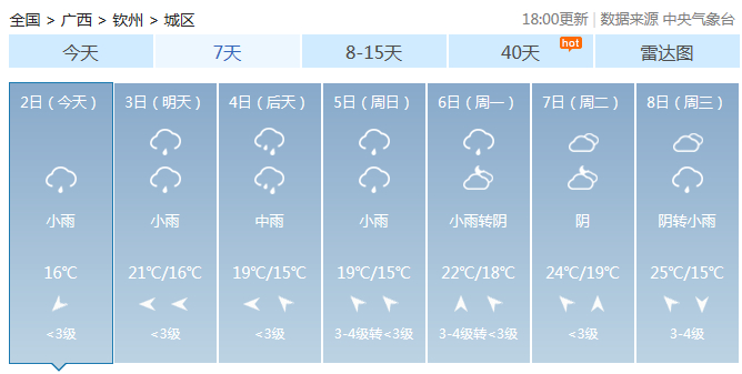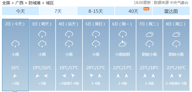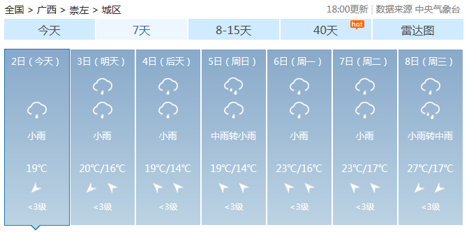 广西主要城市7天天气预报
