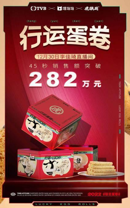 去年末,埋堆堆与TVB、虎头局共同推出了首款联名“行运蛋卷”,在李佳琦直播间取得45秒销售额282万元的成绩,国潮红色经典浮雕铁罐成为了粉丝们争相打卡的对象。截至目前,埋堆堆已与超过20家内地品牌进行合作。