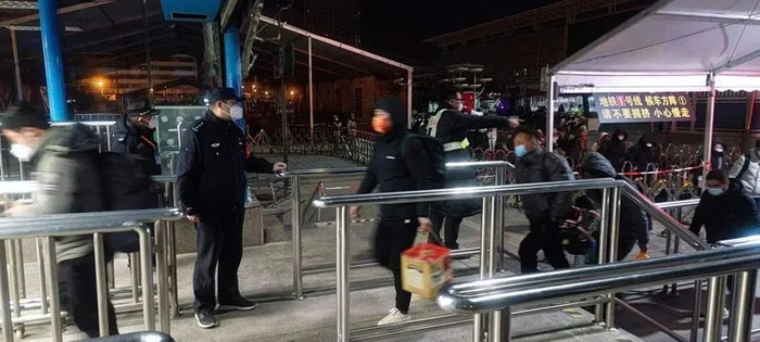 虽然今天凌晨没有出现返程大客流,但短时间内涌向地铁站的集中人流,同样存在安全隐患。蔡杰和同事们提前在地铁入口处驻守,分段放行乘客,并留出缓冲区。参与春运安保这些年,蔡杰感受到“乘客越来越守秩序”:“虽然大家都很累,但基本都会自觉排队,需要民警出面解决的纠纷越来越少。”