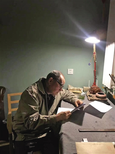 拜访李先生是12月初,同年平安夜,我在杏坛路的宿舍写完一篇两万余字的《福克纳的战争书写》,托李先生的家人马小起老师转给他看。后来听闻李先生很开心,马老师还拍下了他当时伏案批阅的情形。作为一份温暖的勉励,这张照片我珍藏至今。