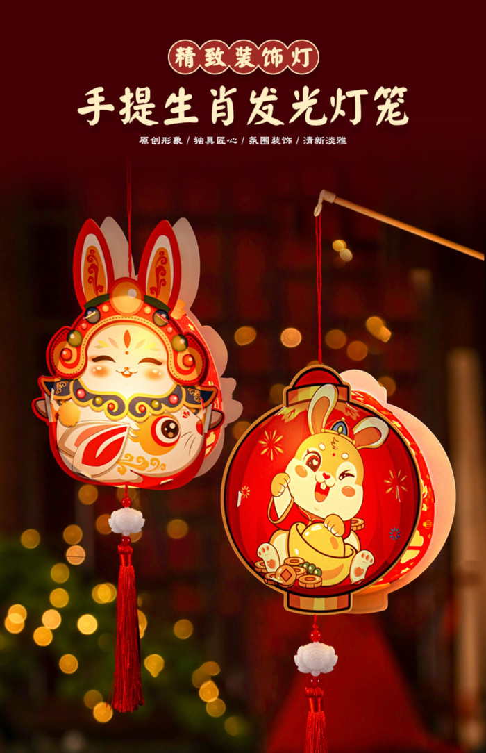 国潮剪纸风格兔年灯笼 体验感满满
