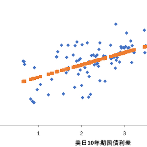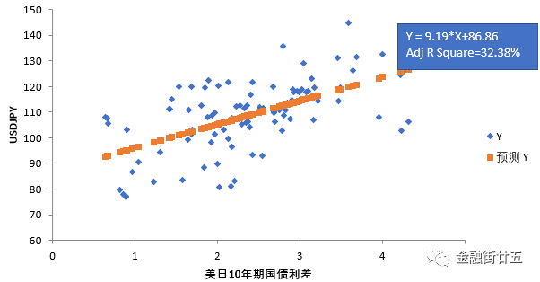 图1:10年期美日国债利差与USDJPY即期汇率回归分析