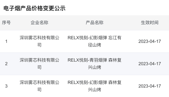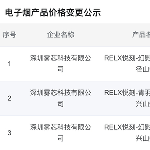 2月3日消息,全国统一电子烟交易管理平台信息显示,悦刻有三个系列的多款国标电子烟烟弹将在4月17日后进行调价,魔笛有1款烟具进行调价。