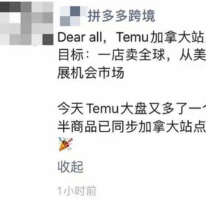 据一位卖家提供的拼多多小二朋友圈截图显示,当前Temu平台的过半商品已同步在加拿大站点开始测试。