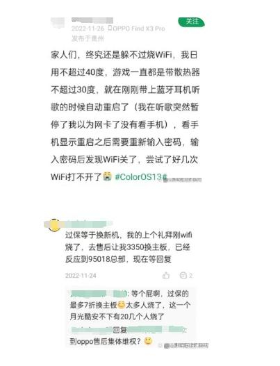 据王先生向黑猫投诉提供的信息显示,网上存在大量OPPO Find X3Pro系列手机烧wifi及其他主板问题的情况存在。