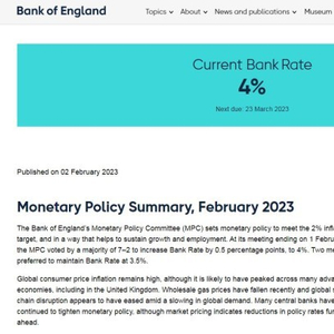 英国央行连续第十次加息 基准利率升至4%