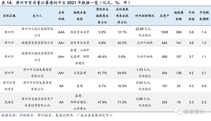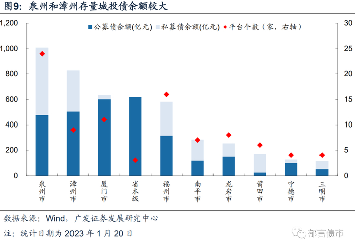 最后我们重点选取了城投存量债规模较大的省本级、泉州、漳州、厦门和福州,分别从产业结构和平台概况等方面进行详细分析。