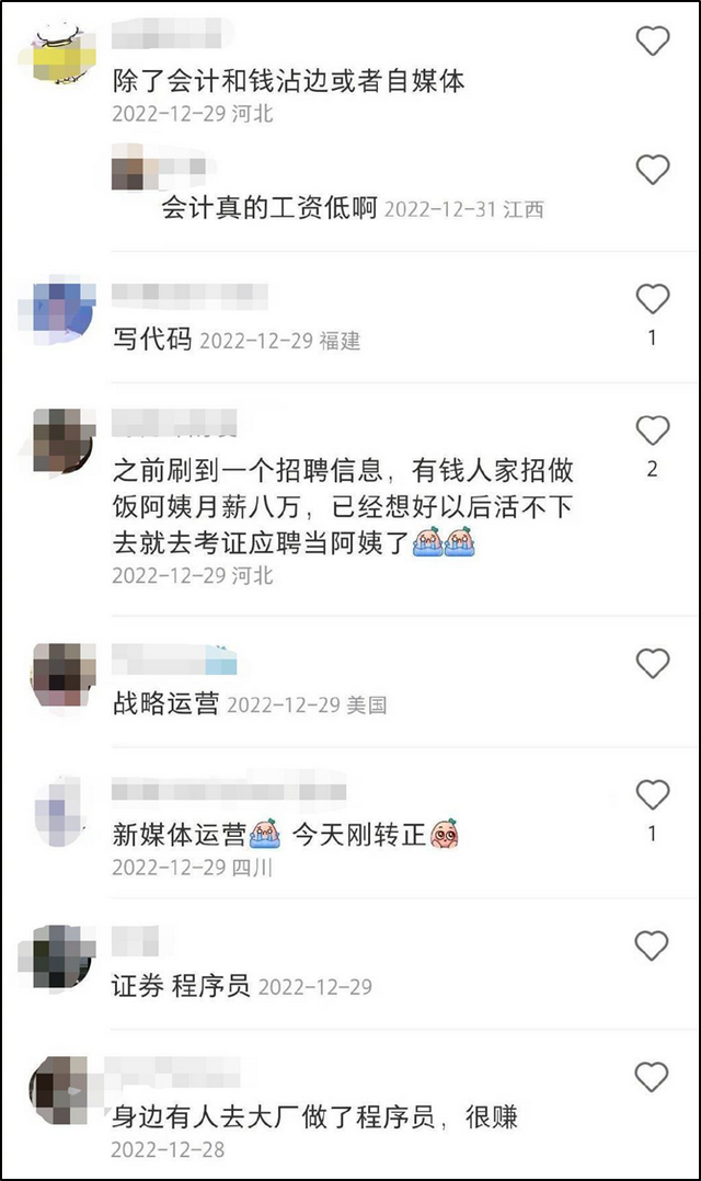 主播、金融、it码农、律师、设计师、外贸、医美、摄影师、自媒体、黄金行业、开早餐店、大厂传媒新媒体、ipo(IPO一般指首次公开募股)、育儿嫂……