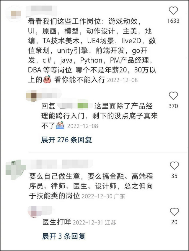 课代表帮大家整合了一下,网友推荐的热门高薪行业如下: