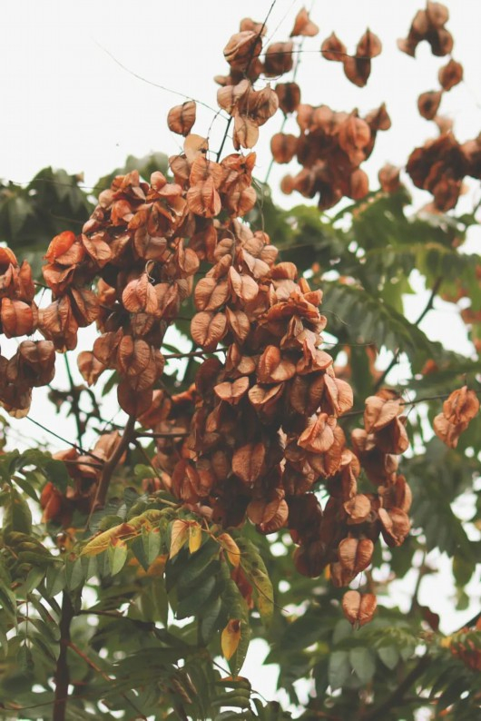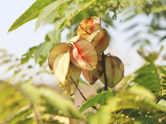 这个季节的栾树形成了别致的景色,密密麻麻的蒴果像无数的小灯笼挂满枝头,异样美丽,所以栾树还有另一个称呼——灯笼树。