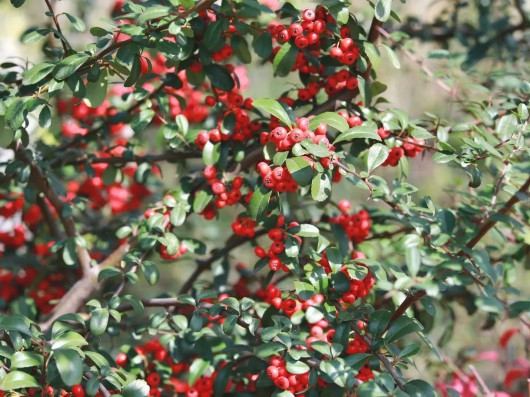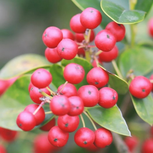 不要将火棘跟无刺枸骨混淆了哦!仔细观察你会发现火棘果是扁圆的,而另两种红色果实却是滚圆的。