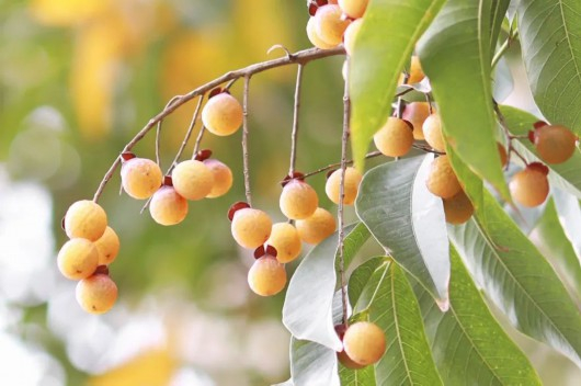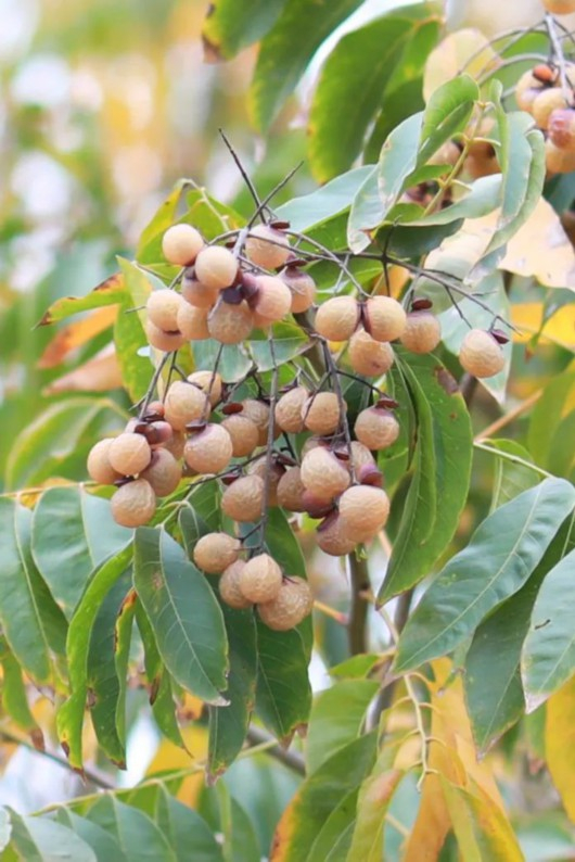 过了赏叶期的无患子沉甸甸的果实镶嵌枝头,那成串饱满的黄色果子像极了果肉饱满的龙眼,故而,民间也把无患子称作“假龙眼”。
