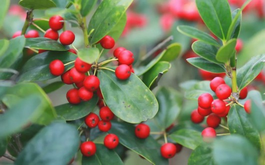 平日里看到,都是绿油油的叶片被修剪成圆球形。但到冬天再一看,红色的果子,鲜艳的色彩,显得格外喜庆,这就是冬天的颜值代表之一——枸骨。
